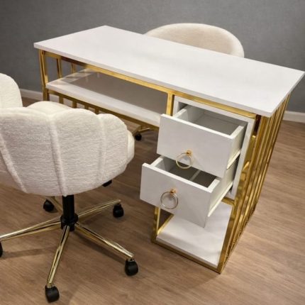 Çekmeceli Parlak Gold Manikür Masa Seti